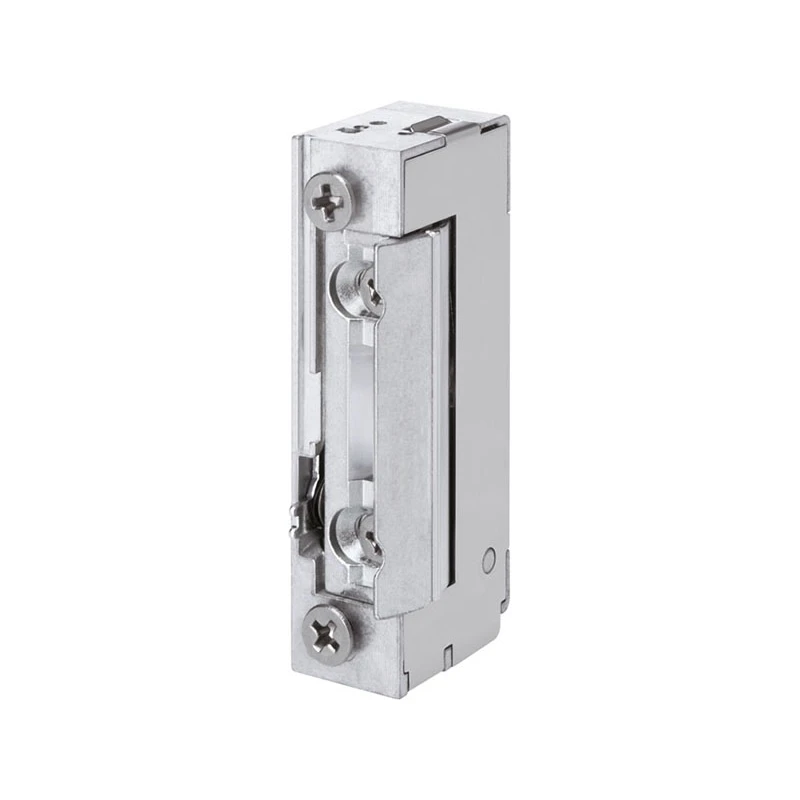EFFEFF Effeff MINI vékonyított kivitelű elektromos zárfogadó homloklemez nélkül, mechanikusan kiiktatható, 10-24V AC/DC, áramfelvétel AC/250mA, DC/280mA, feltörési ellenállás 381kg, FaFix, FaFix, mind jobbos, mind balos DIN ajtók esetén használható, a zárfogadó 200N/AC és 50N/DC előfeszítés esetén is használható, vízszintesen is szerelhető, működési hőmérséklet -15°C~+40°C, mérete 66x16x25,5mm