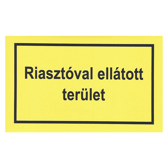 - Felirat: "RIASZTÓVAL ELLÁTOTT TERÜLET" – egyértelmű és könnyen érthető üzenet, amely figyelmezteti az illetékteleneket a terület védettségére.