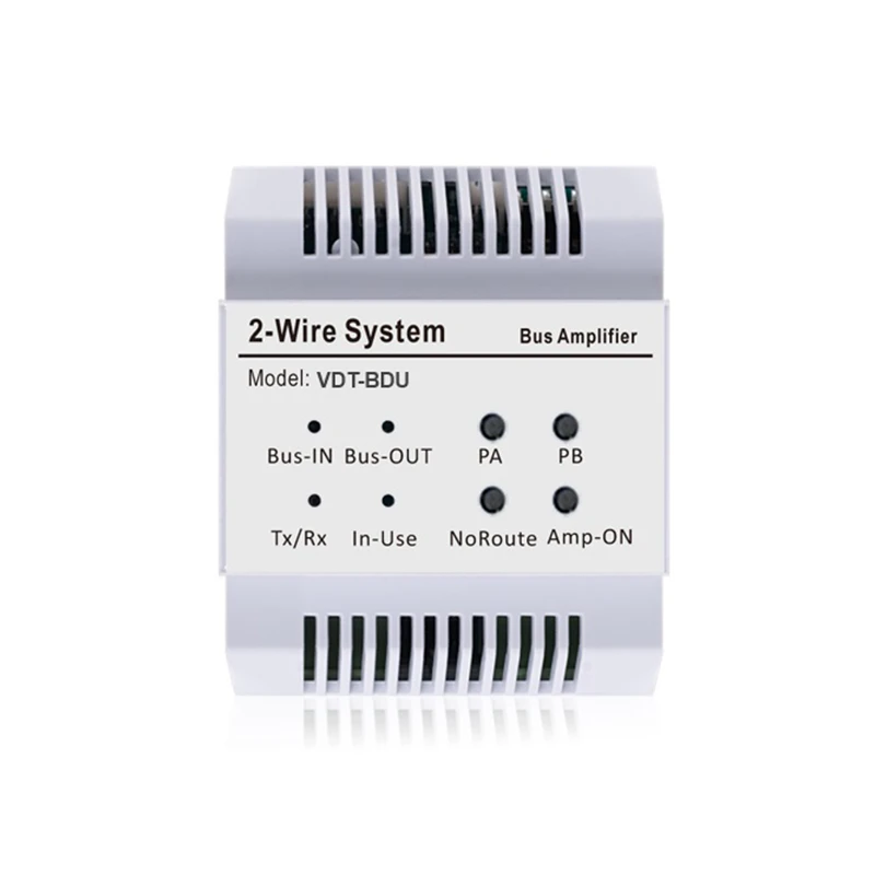 FUTURA vonali buszerősítő, DT-2 rendszer kábelhosszak megnövelése max. 480 m-ig, repeater és router működési módok, max. 2 VDTBDU kapcsolható egymás után, teljes optikai leválasztás, kétvezetékes polarizálatlan bekötés, tápfeszültség 20~28 Vdc, áramfogyasztás (be-/kimenet készenléti/maximális) 20/48 74/98 mA, 35 mm-es DIN sínre szerelhető ház, méret 90x72x60 mm, működési hőmérséklet -15°C~+55°C