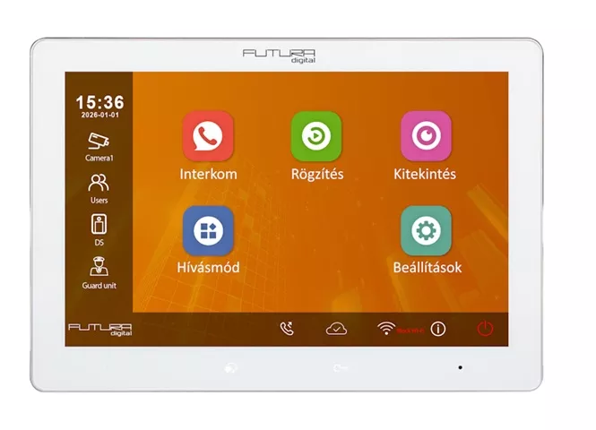 A Futura Digital FDH-481 egy korszerű, 10 hüvelykes érintőképernyős beltéri monitor, amelyet IP alapú, 2 vezetékes videókaputelefon rendszerekhez terveztek. A készülék modern formatervezése és fejlett funkciói révén ideális választás társasházi és családi házas alkalmazásokhoz egyaránt. A beépített Wi-Fi modul, az okostelefonos hívástovábbítás, valamint a Tuya Smart kompatibilitás lehetővé teszi az intelligens otthoni rendszerekhez való integrációt. A kihangosított kommunikáció és az interkom funkciók kényelmes és hatékony felhasználói élményt biztosítanak.