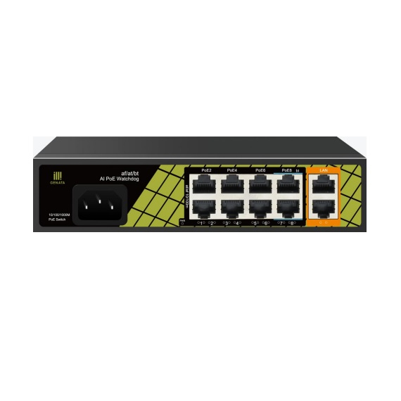 GENATA GNT-ES10UD-P-E 8FE(PoE)+2GE(UP-LINK) AI Hibrid PoE Switch