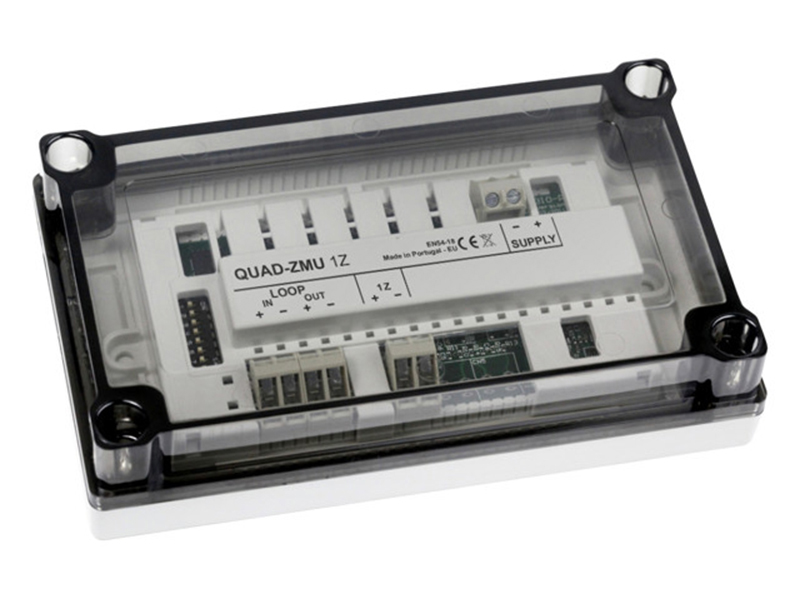 - Detektorok csatlakoztatása: A zóna figyelő egység képes több detektor csatlakoztatására a tűzjelző hurokba, a 4 előre beállított címmel.