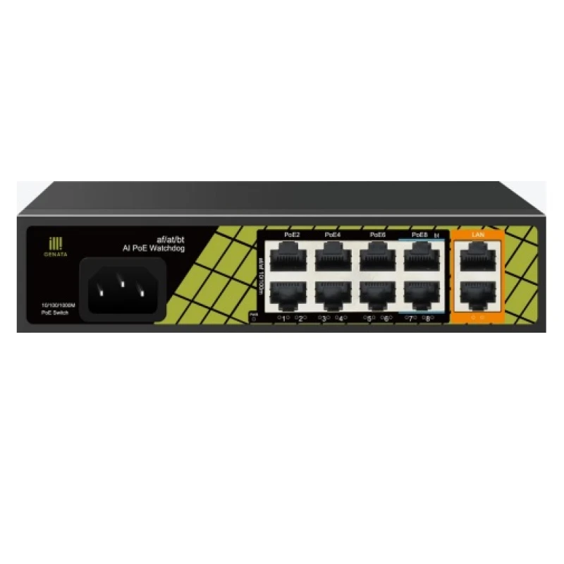GENATA GNT-ES10UD-P-E AI PoE Switch 8x PoE 10/100 Mbps 2x Uplink 120 W tápegység Rack 1U IP30
