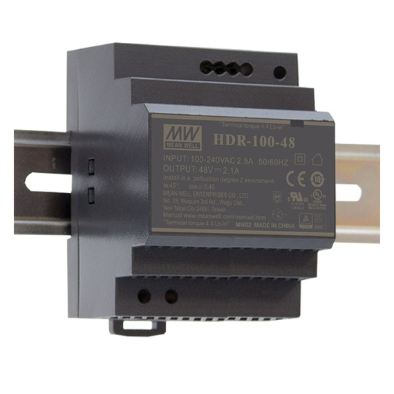 A HDR 24V/100.8W/4.2A egy kompakt, ipari felhasználásra tervezett DIN sínre szerelhető tápegység, amely stabil 24 V DC kimeneti feszültséget biztosít akár 4.2 A áramerősség mellett. A készülék ideális választás vezérlőszekrényekbe, automatizálási rendszerekbe és egyéb ipari alkalmazásokba, ahol megbízható és hatékony táplálás szükséges. A termék kis mérete és hatékony hőelvezetése lehetővé teszi a sűrűn szerelt elosztószekrényekben való alkalmazást is.