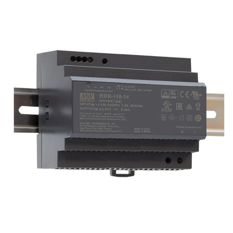 A HDR 15V/150W/9.5A DIN sínes tápegység egy ipari alkalmazásokhoz tervezett, megbízható és kompakt tápegység, amely ideális választás vezérlőszekrényekhez, automatizálási rendszerekhez, biztonságtechnikai eszközökhöz és egyéb 15 V DC tápfeszültséget igénylő berendezésekhez. A DIN sínre szerelhető kialakítás gyors és egyszerű telepítést biztosít, míg a beépített védelem (SCP, OLP, OVP) hosszú távon is stabil működést garantál. A kimeneti feszültség 13.5–18 V DC tartományban állítható, így a tápegység jól illeszthető különböző rendszerkövetelményekhez.