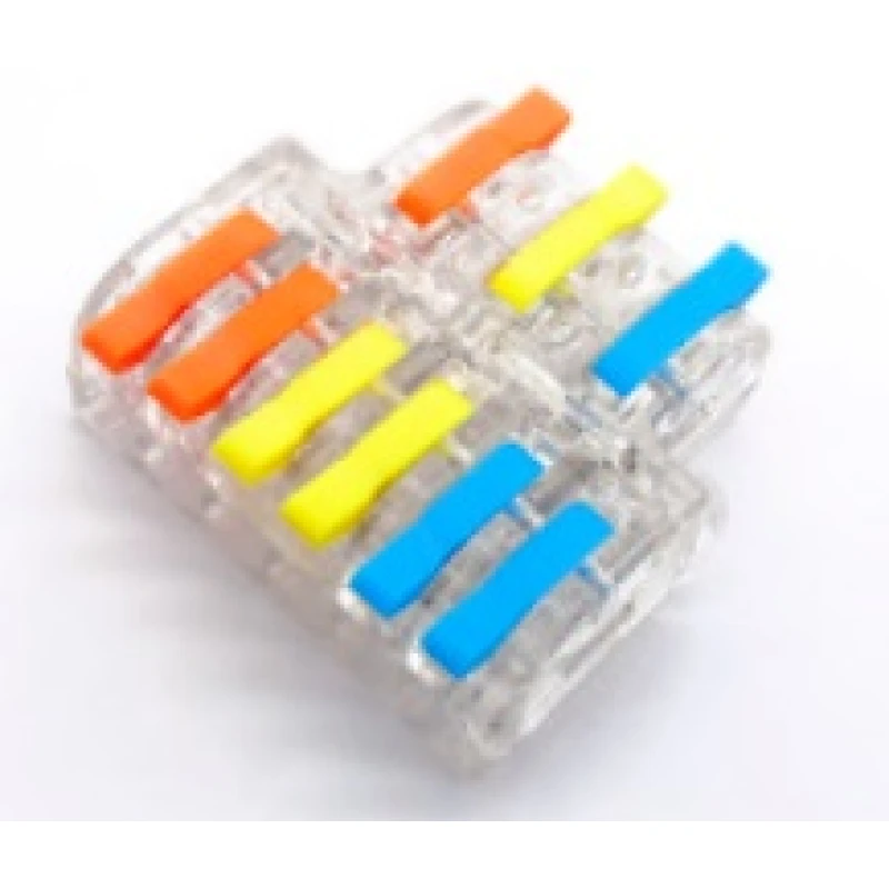 Szín:Átlátszó ház narancs, sárga és kék kapcsokkal a vezetékek és erek egyszerű megkülönböztetésére Névleges feszültség:250V Névleges áram:32A Huzalátmérő:0,08-4,0 mm Feszültség ellenállás:2.5KV Rugó anyaga:Rozsdamentes acél Érintkező anyaga:RézTermékjellemzők