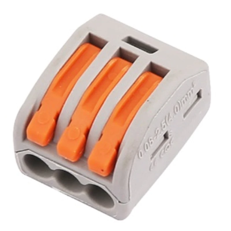 WAGO rendszerű elektromos gyorscsatlakozó rendszer kapcsos-rugós, 3 tű 3 eret vezetéket kábelt közösít