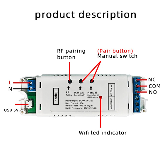 A HONNOR SECURITY 2CH WiFi Smart Switch egy kétcsatornás, vezeték nélküli vezérlésre alkalmas relémodul, amely lehetővé teszi különféle elektromos eszközök távoli kapcsolását WiFi hálózaton keresztül. A készülék elsősorban otthonautomatizálási, ipari vezérlési és biztonságtechnikai rendszerek integrált elemeként alkalmazható. Kompatibilis többféle okosotthon-platformmal, valamint támogatja a mobilalkalmazáson keresztüli vezérlést is. A relémodul alkalmas alacsony és közepes feszültségű váltó- és egyenáramú áramkörök kapcsolására.