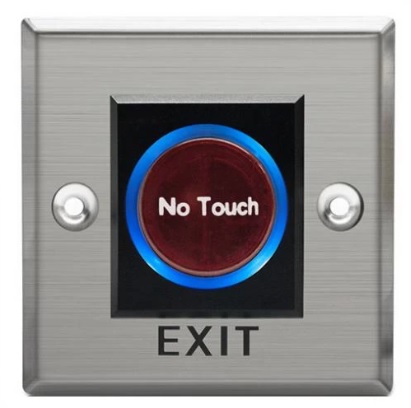 HONNOR SECURITY HS-K2B érintésmentes kiléptető gomb NC/NO/COM "NO TOUCH" és "EXIT" felirattal, 86x86x35mm