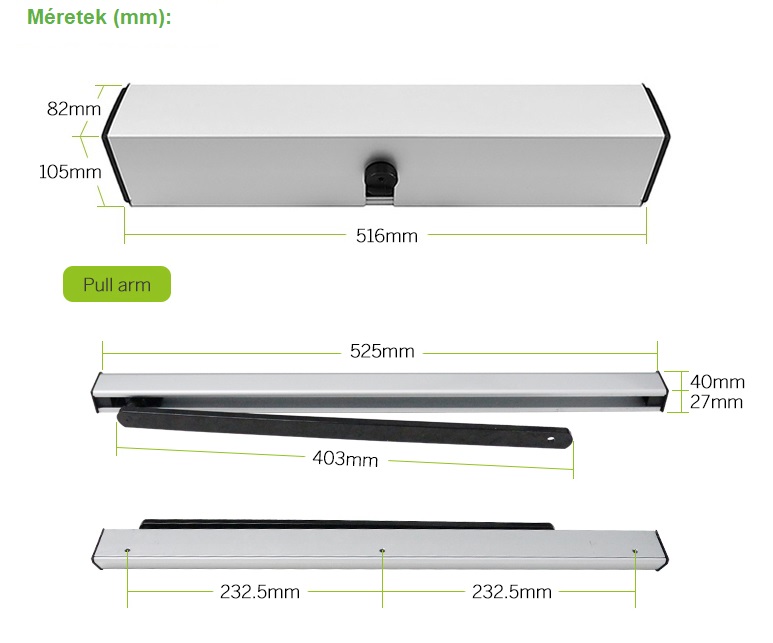 TIGERMAT TM-ED100 PULL belsőnyitású, csúszókaros automata lengőajtó nyitó