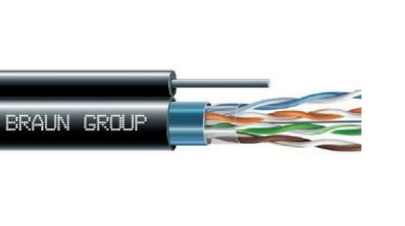 HONNOR SECURITY F/UTP CAT.5E fali, kültéri feszítőszálas kábel, BRAUN GROUP 305 méter/doboz