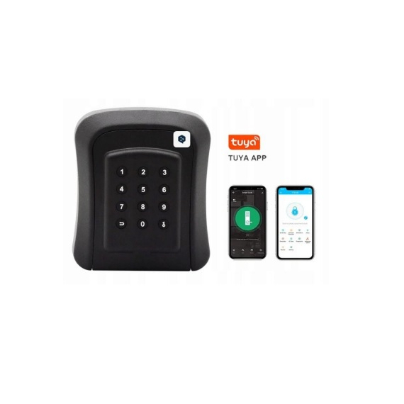 A robusztus fémház fokozott mechanikai védelmet nyújt, míg az IP44-es védettségi szint lehetővé teszi kültéri alkalmazását is, védelmet biztosítva a fröccsenő víz és por ellen. A beépített elektronikus zár lehetővé teszi a PIN kódos nyitást, valamint a Tuya IoT platformon keresztüli távoli hozzáférés-szabályozást és naplózást. A készülék Bluetooth és Wi-Fi kapcsolaton keresztül kommunikál a mobilalkalmazással, így a jogosultságok dinamikusan kezelhetők.