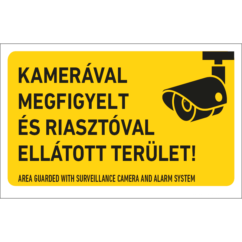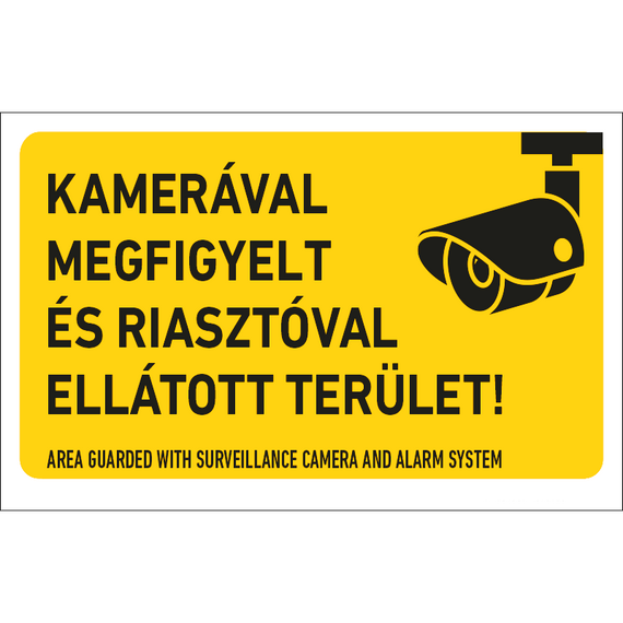 HONNOR SECURITY „Kamerával megfigyelt és riasztóval ellátott terület!” matrica (belülről ragasztható) – 250×160 mm