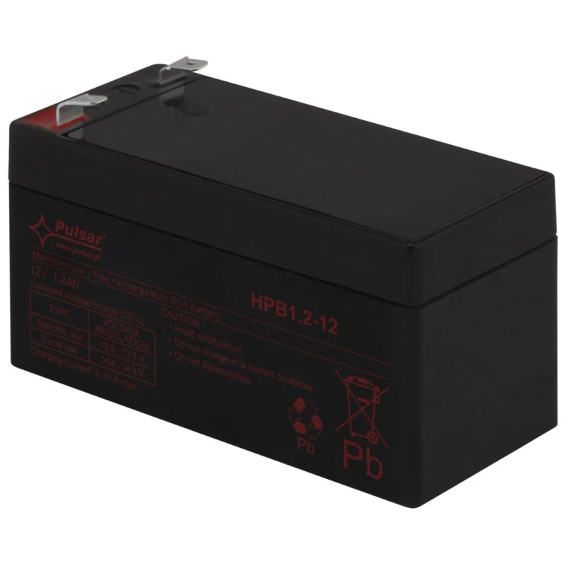 PULSAR AGM technológiával készült karbantartásmentes 12 V, 1,2 Ah akkumulátor várható élettartam 5-8 év, 20 °C-on ajánlott töltési áramerősség: 0,12 A maximális töltési áramerősség: 0,36 A 98 x 59 x 44 mm