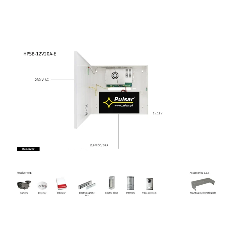 A HPSB 13,8V/20A/65Ah típusú puffer, kapcsolóüzemű tápegység egy professzionális, nagy megbízhatóságú áramellátó megoldás, amelyet kifejezetten ipari és biztonságtechnikai alkalmazásokhoz terveztek. A készülék ideális választás olyan rendszerek számára, ahol elengedhetetlen a folyamatos, megszakításmentes tápellátás, még hálózati kimaradás esetén is.