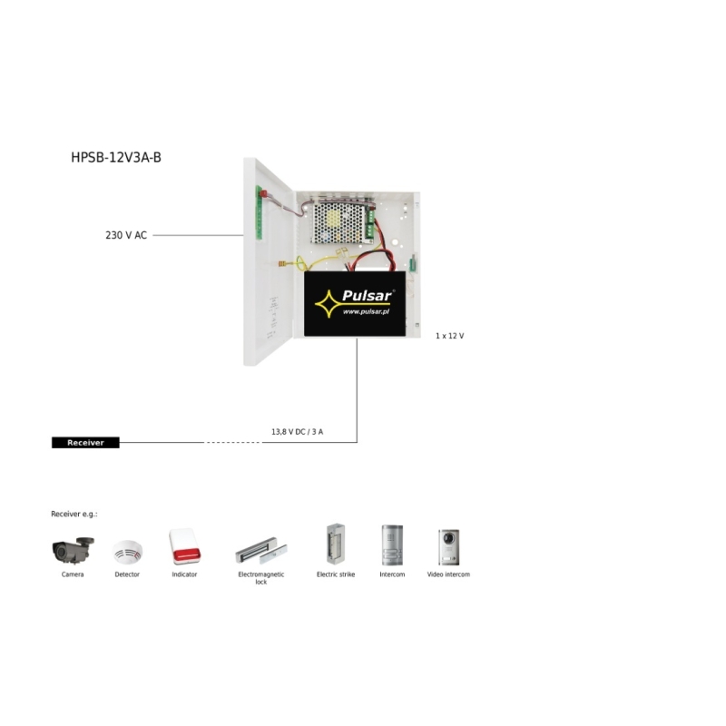 PULSAR Kapcsolóüzemű szünetmentes tápegység, szabotázsvédett fémdobozban.