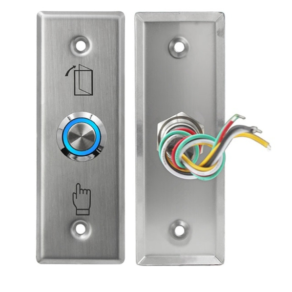 HONNOR SECURITY HS-K6A-LED Rozsdamentes acél ajtókioldó kilépő nyomógomb, LED háttérvilágítással, 12–24V DC, 93x30mm, IP44