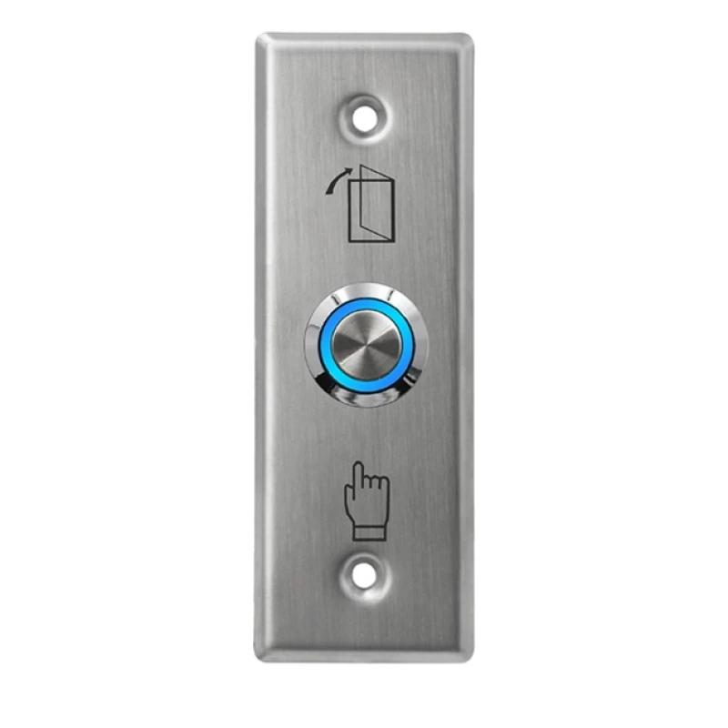 HONNOR SECURITY HS-K6A-LED Rozsdamentes acél ajtókioldó kilépő nyomógomb, LED háttérvilágítással, 12–24V DC, 93x30mm, IP44