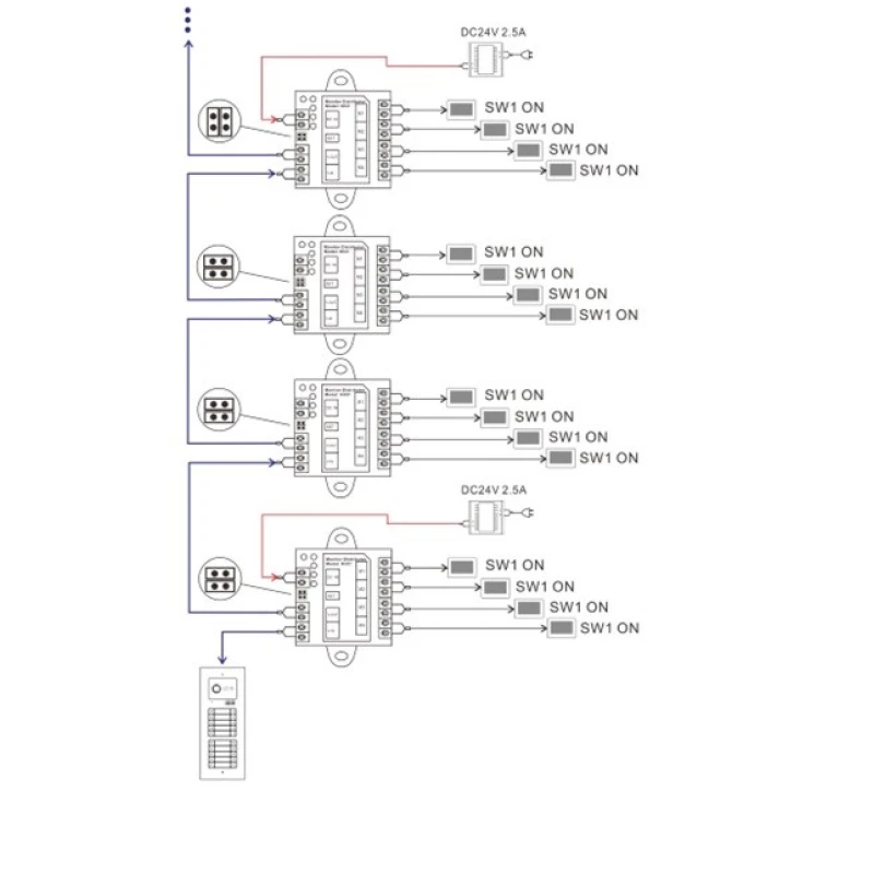 - Akár 30 szintű hálózatépítés támogatása: Lehetővé teszi nagyobb épületek vagy többemeletes rendszerek kialakítását, miközben biztosítja a jel- és energiaátvitel stabilitását.