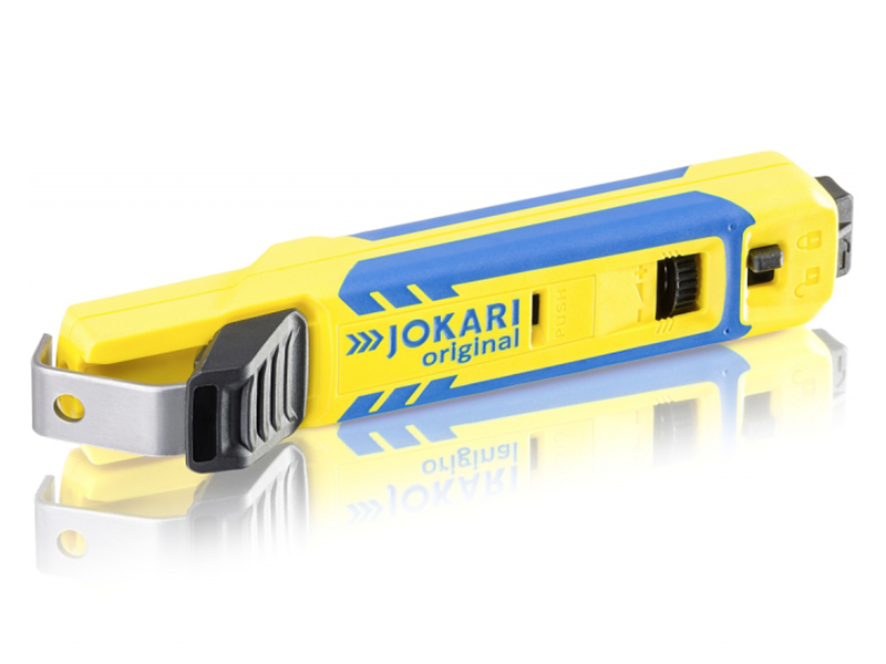 JOKARI Inteligens kábelkés rendszer, Intelligens cserélhető befogó kampó rendszer, legtöbb 4 - 70 mm R közötti kábeltípushoz, vágás pontossága ellenőrizésére szolgáló kémlelő nyílás, 8-28 mm R alapszerszám, automatikusan záródó penge védelem, biztonsági kapcsoló, egyszerű horogcsere, ergonomikus kivitel