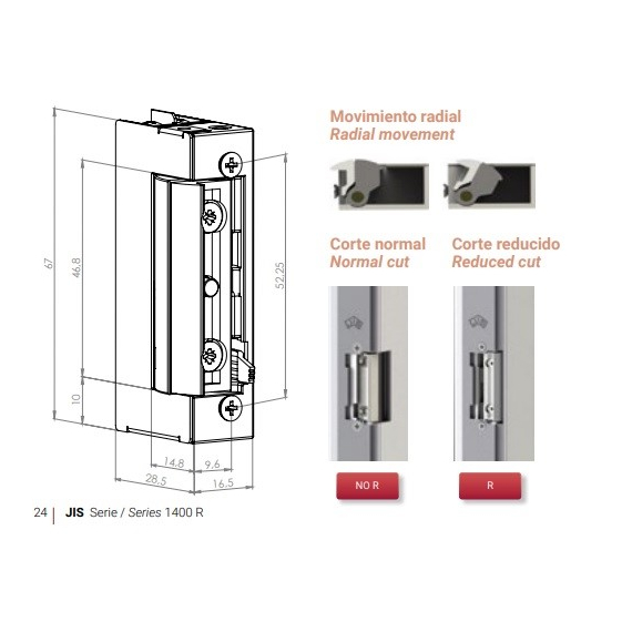 A JIS-1440R-A egy professzionális, kiemelkedő minőségű elektromos ellenoldal, amelyet radiálisan mozgó retesszel láttak el. Ez a keskeny kivitelű zárfogadó ideális választás szakemberek számára, akik megbízható és tartós megoldást keresnek ajtózárási rendszerekhez.