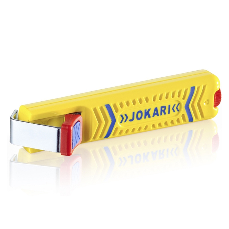 JOKARI Egyedülálló csúszás gátolt markolat, 4-16 mm R standard hengeres kábelek szigetelésének eltávolítására, Állítható vágásmélység, Automatikus forgó penge, Titán-nitrid bevonatú pengék, 1 db tartalék pengével-GS tanúsítvánnyal
