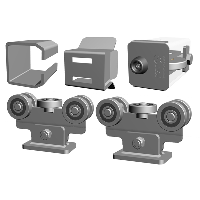 KANO 2db 5-ös görgőcsoport, 1db felfutó görgő, 1db fogadó, sín nélkül