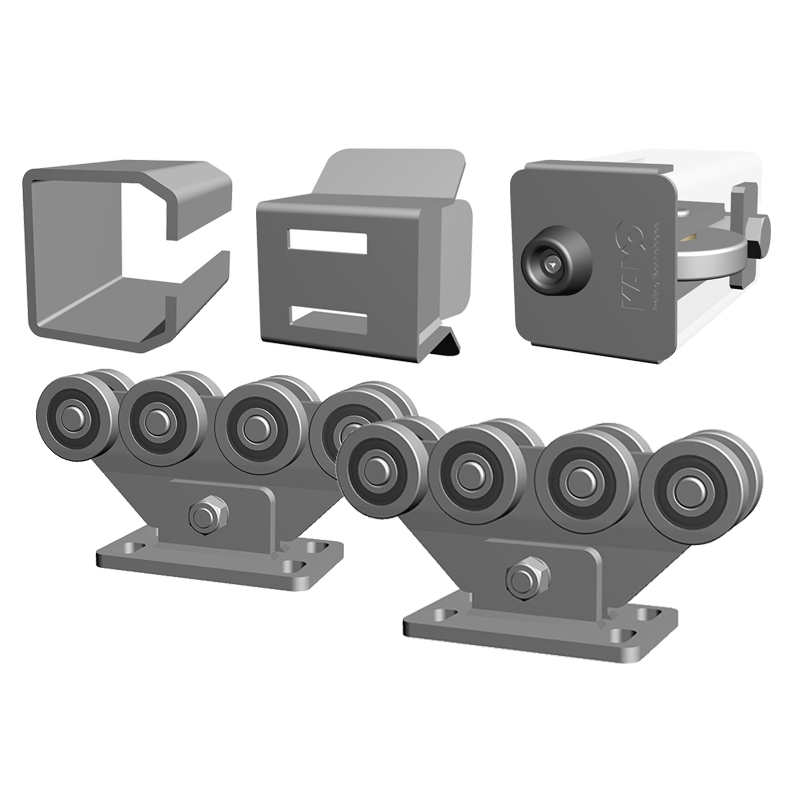 KANO 2db 8-ös görgőcsoport, 1db felfutó görgő, 1db fogadó, sín nélkül