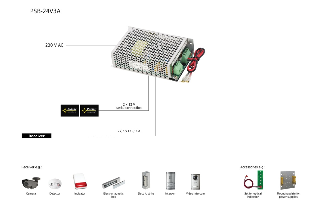 PULSAR Kapcsolóüzemű Tápegység Akkumulátortöltővel – 27.6 Vdc / 3.5 A