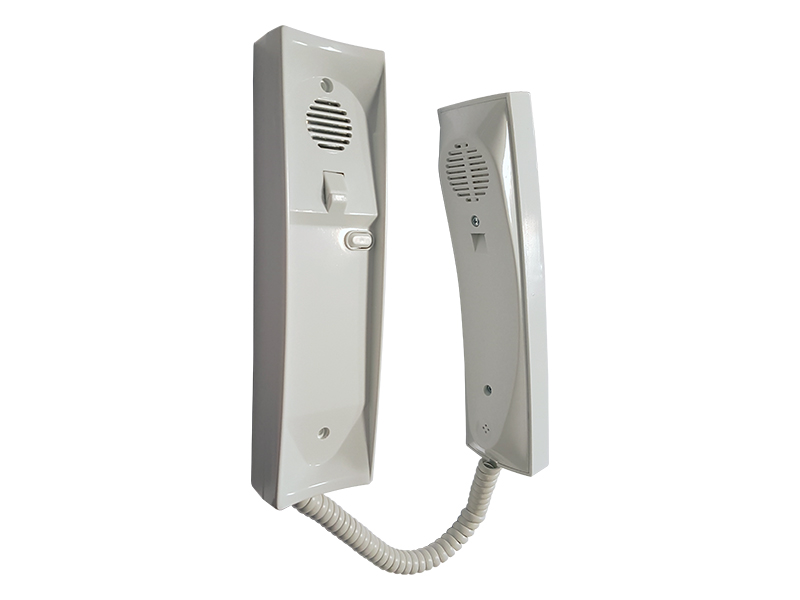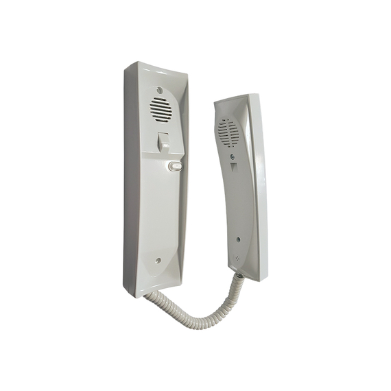 CODEFON kétvezetékes digitális beltéri egység, fehér ház fehér hallgatóval, ajtó nyitó gomb
