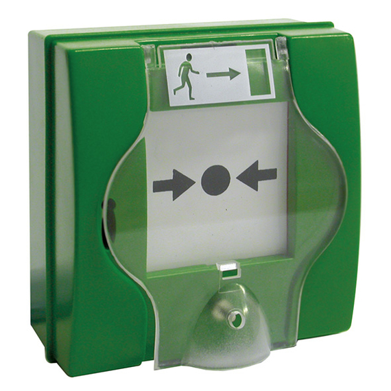 FDP kézi jelzésadó vésznyításra, plombálható, újraélesíthető, zöld műanyag ház, plexi ablak