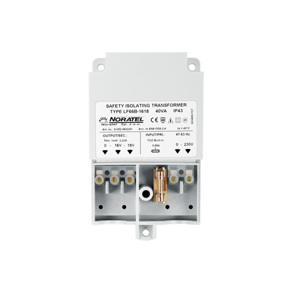 A transzformátor kialakítása lehetővé teszi falra vagy elektromos szerelődobozba történő rögzítését. A burkolat IP43-as védettségi szintje biztosítja a védelmet fröccsenő víz és 1 mm-nél nagyobb szilárd testek ellen, így beltéri telepítési környezetben is biztonságosan alkalmazható. A készülék megfelel az EN 61558 szabványnak, amely a kisfeszültségű transzformátorokra és tápegységekre vonatkozó biztonsági előírásokat határozza meg.