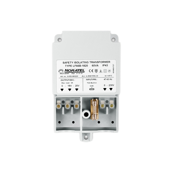A transzformátor 230 V AC hálózati feszültségről működik, és szekunder oldalon 18–20 V AC feszültséget biztosít, legfeljebb 3 A áramerősségig. Ez lehetővé teszi a központi egység mellett több kiegészítő modul vagy érzékelő egyidejű tápellátását is. A készülék kialakítása megfelel az IP43 védettségi osztálynak, így beltéri, poros vagy enyhén nedves környezetben is biztonságosan telepíthető.