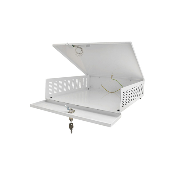 PULSAR kisméretű (plusz) szabotázsvédett fém doboz, videorögzítők illetéktelen hozzáférés elleni mechanikus védelme, víszintes rögzítő elhelyezés, kinyitás elleni szabotázsvédelem, mechnanikus zár, 1 mm vastagságú acéllemez ház, méret külső/belső 405x120x435 / 395x100x430 mm, beltéri alkalmazás, fehér szín, működési hőmérséklet -10°C~+40°C, opcionális tartozék: ARAW45 ventillátor hőmérsékletérzékelővel, AWO445BR konzol függesztett (pl. asztal alá) szereléshez