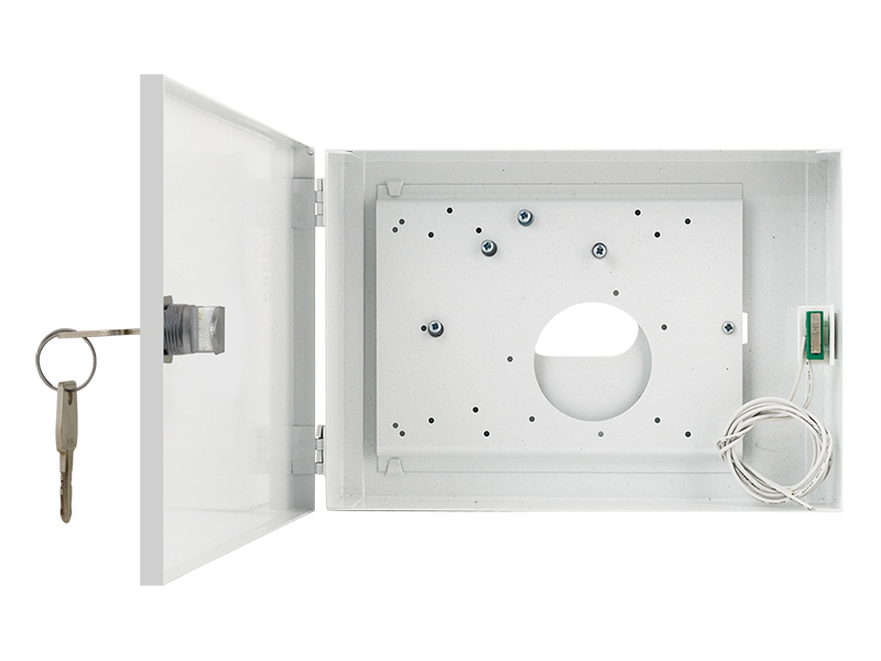 PULSAR kisméretű szabotázs védett fém doboz, kezelők illetéktelen hozzáférés elleni mechanikus védelme, kompatibilis: Satel CA-5 KLCD-L, CA-10 KLCD-L, CA-64 KLCD-L, INTEGRA KLCD , CA-4V KLED, CA-64 S, CA-64 SZ, SZW-02, Paradox DIGIPLEX DGP-641 LCD, DGP-610 LED, DGP-620 LED, SPECTRA 1686 V, kivehető szerelőlap, kinyitás elleni szabotázsvédelem, mechnanikus zár, 0.7 mm vastagságú acéllemez ház, külső méret: 220x155x50 mm, kezelő max. mérete: 160x145x40 mm, beltéri alkalmazás, fehér szín, működési hőmérséklet -10°C~+40°C