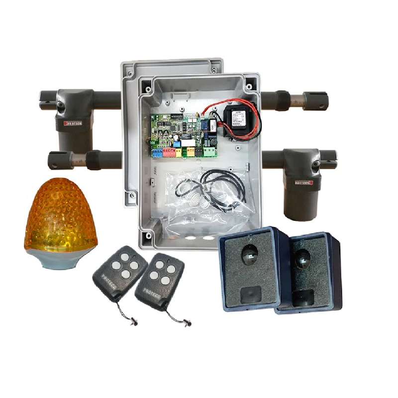 A PROTECO KIT-MyASTER4 egy 230 V-os szárnyaskapu mozgató szett, amelyet kétszárnyú kapukhoz terveztek. Ez a szett ideális választás családi házak számára, ahol napi 4-5 nyitás szükséges. A szett tartalma és funkciói lehetővé teszik a megbízható, kényelmes és biztonságos kapuműködtetést.