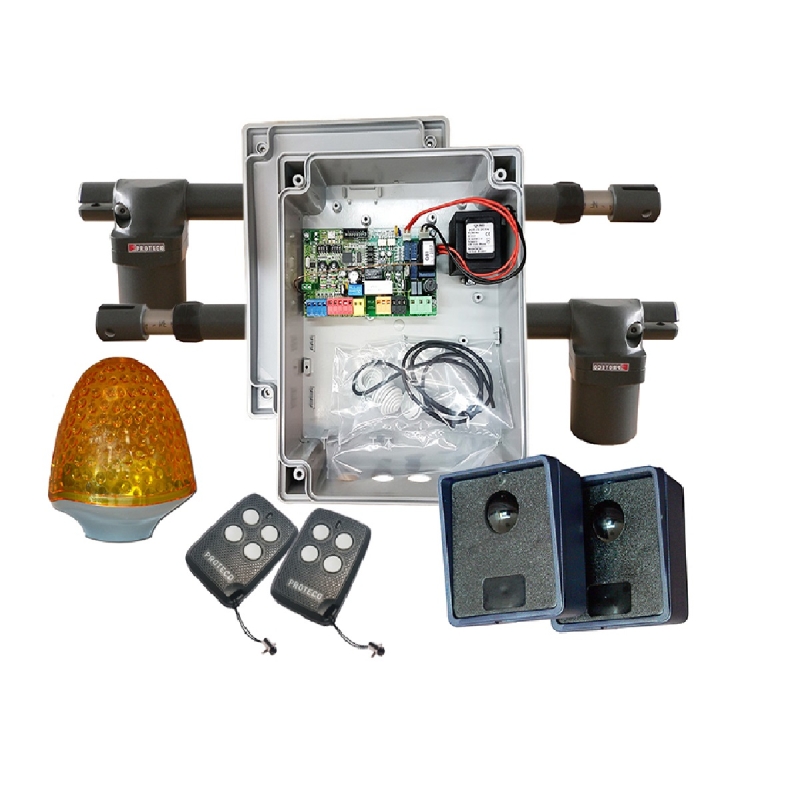 A PROTECO KIT-MyASTER5 szett kifejezetten családi házak kétszárnyú kapuihoz készült. Ideális választás közepes súlyú (200-300 kg) és legfeljebb 3,5 méteres kapuszárnyakhoz. Óránként 4-5 nyitásra optimalizált, így tökéletesen megfelel a mindennapi használatra.