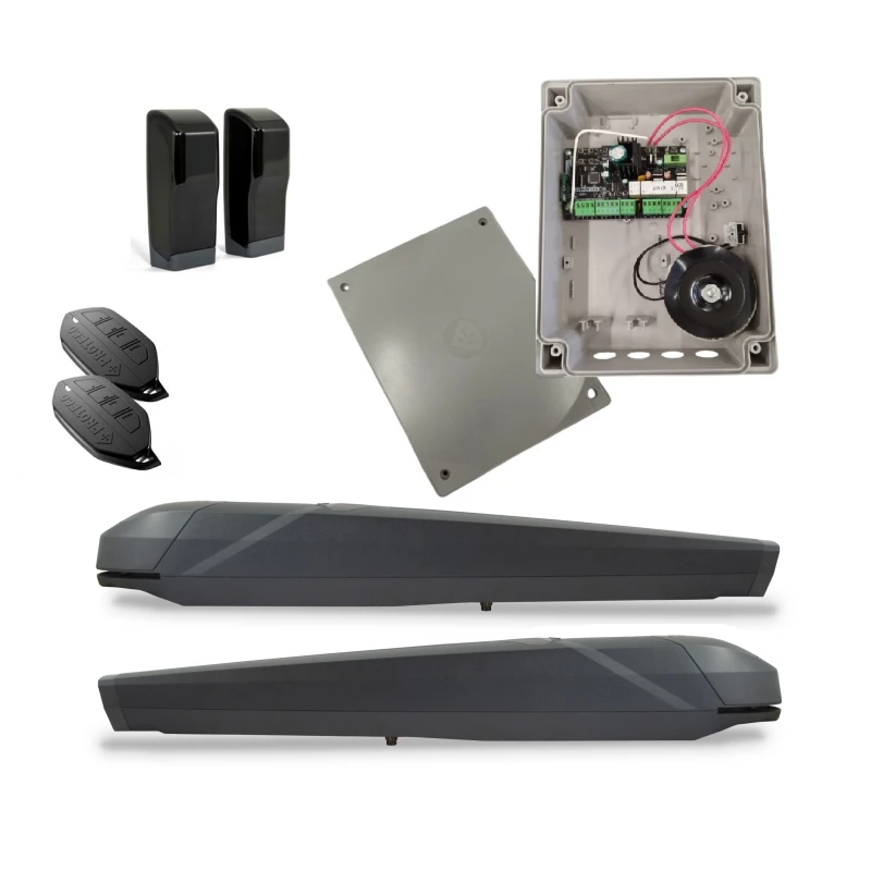 A 24 V DC motorok lehetővé teszik az intenzív használatot, valamint akkumulátoros tartalék tápellátással is kombinálhatók, így biztosítva a folyamatos működést áramkimaradás esetén is. A rendszer ideális választás lakossági, társasházi és ipari környezetekben történő telepítéshez, különösen ott, ahol a kapuoszlop mélysége vagy a nyitási szög speciális megoldásokat igényel.