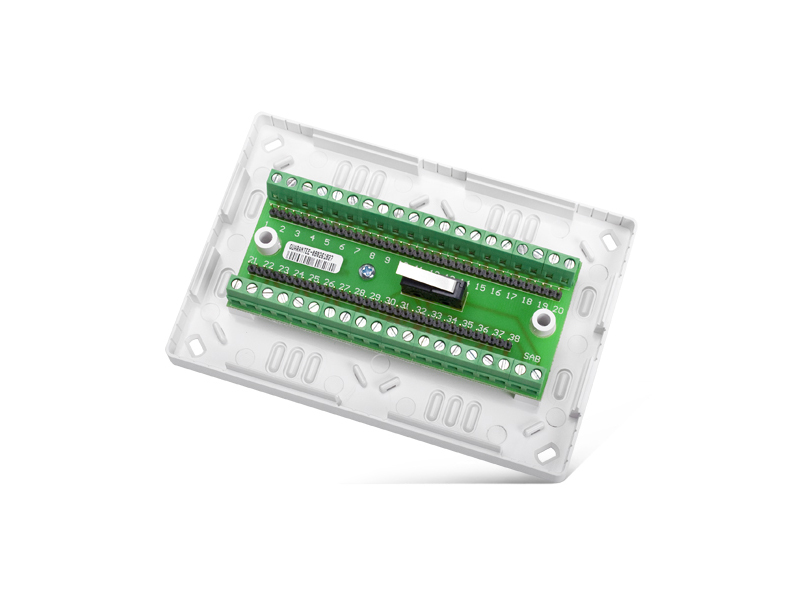 - Csatlakozók: Összesen 40 darab csavaros csatlakozó, ebből 38 soros elrendezésű, 2 pedig különálló. A csatlakozók jumperezettek, így lehetővé teszik a közös tápfeszültség vagy jelvonal egyszerű továbbvezetését.