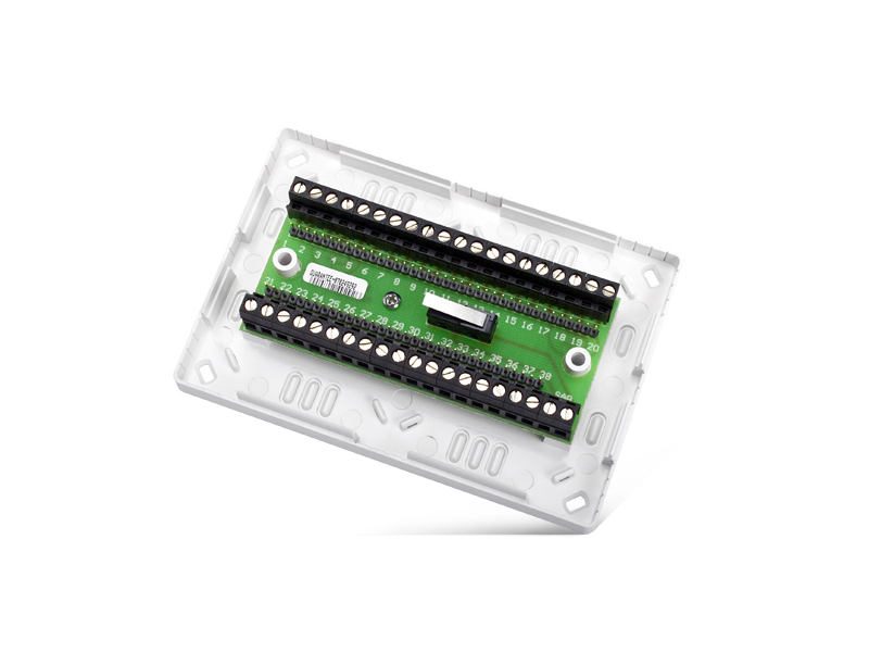 - 38+2 db csavaros csatlakozó – 2,5 mm² keresztmetszetű vezetékekhez, jumperezett kialakítással a gyors és rendezett bekötés érdekében.