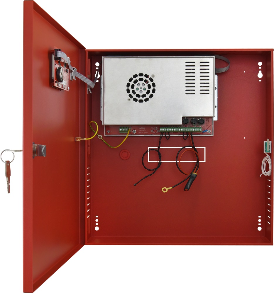 PULSAR EN54C 27,6V / 10A / 2x17Ah / LCD tápegység tűzjelző rendszerekhez, Tápegység 230VAC, Tápegység kimenet 9,2A / 27,6VDC - folyamatos működéshez - Imax a
