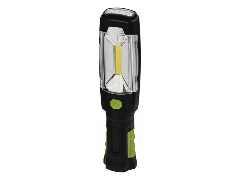 EMOS LED lámpa. Multifunkciós, mágneses talpról dönthető, akasztható szerelőlámpa. Beépített 2500mAh Li-ion akkumulátorral! Üzemidő: COB 3,5 óra: 6LED 25 óra.