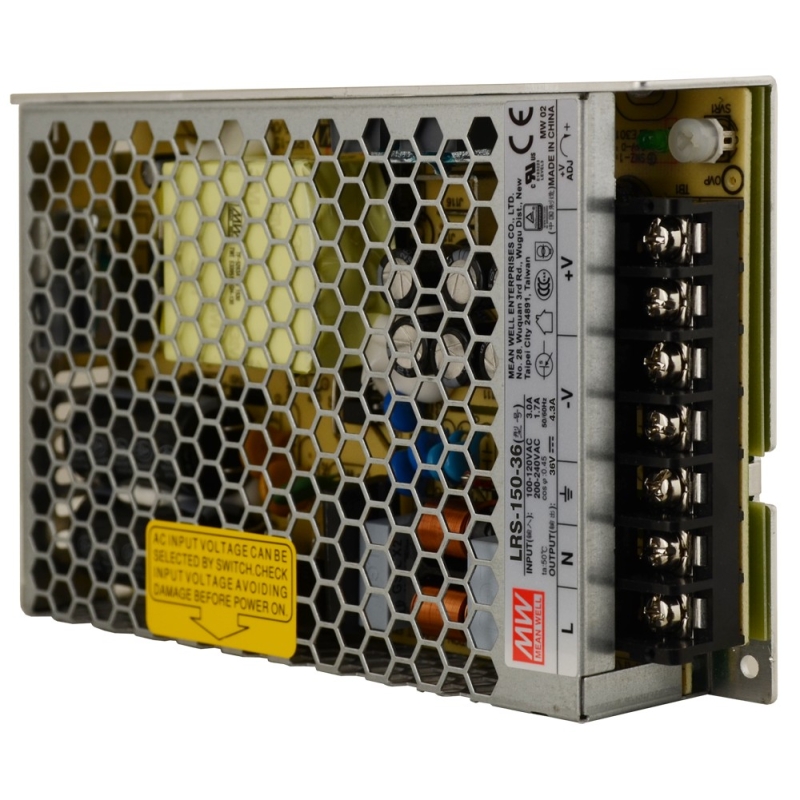 LRS-150-36 tokozott tápegység 36 V DC, 150 W, 4,3 A, állítható feszültség, 1U alacsony profil, LED kijelzés, védelemmel
