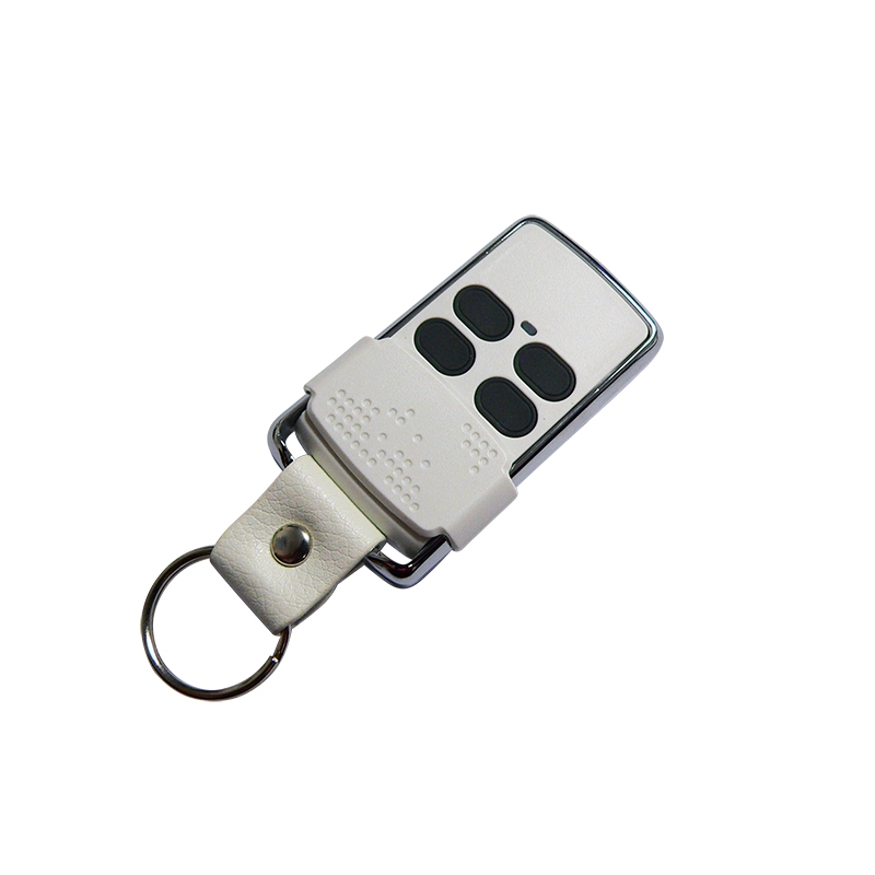 GARDENGATE Távirányító, ugrókódos, 434 MHz-es, négy csatornás, 3V-os CR2032 elemmel, alacsony telepfeszültség jelzés, véletlen működtetés ellen védő nyomógombokat fedő eltolható lap, fehér színű