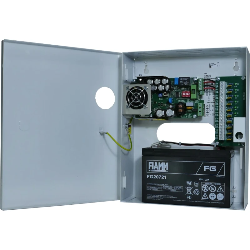 ME.55-12/4 DC-DC CCTV tápegység zárható fémdobozban, 10 kimenet + DVR, 13.8V DC, 1A/kimenet, akkumulátorhellyel, szünetmentes, IP20