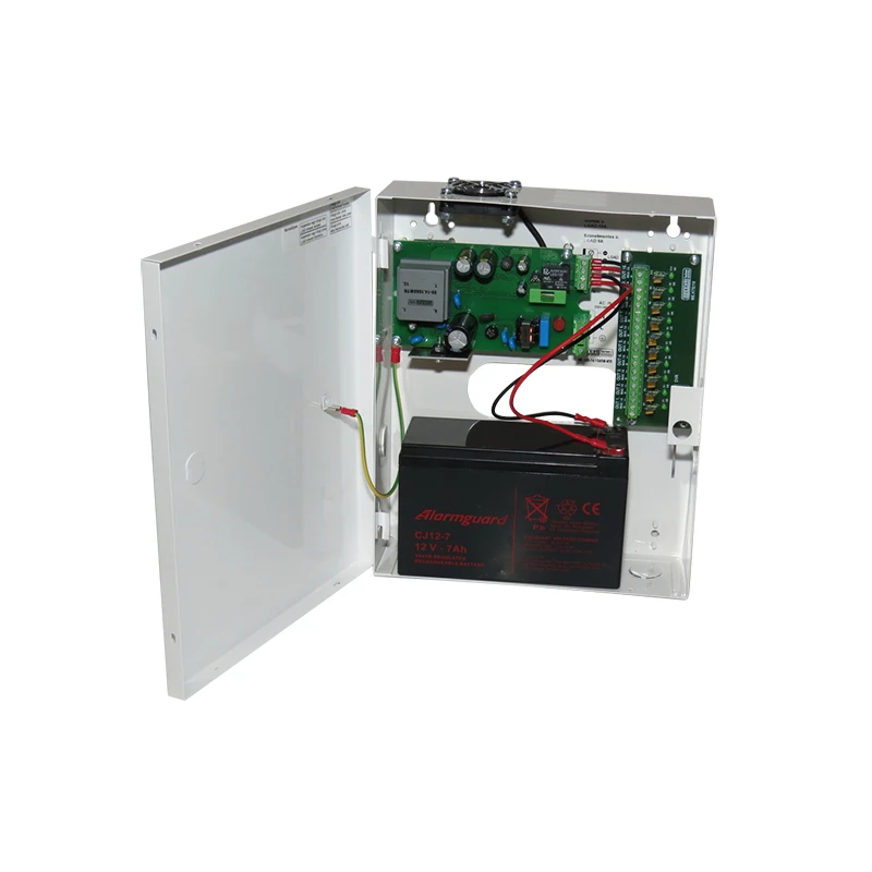 Az MK-PSU10 CCTV tápegység ideális választás kis és közepes méretű videomegfigyelő rendszerek tápellátására. A 10 csatornás kialakítás lehetővé teszi több kamera egyidejű, stabil tápellátását, míg a zárható fémdoboz fokozott fizikai védelmet biztosít. A beépített akkumulátorhely és a választható szünetmentesített (UPS) üzemmód biztosítja a rendszer folyamatos működését áramkimaradás esetén is. A kimeneti feszültség szabályozható 12–13.8 VDC között, így alkalmazkodik a különböző eszközök igényeihez. A LED visszajelzők és hibakimenet segítik a gyors diagnosztikát és karbantartást.