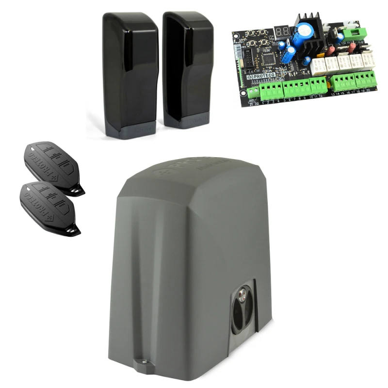 - Fejlett vezérlőegység: A Proteco Q20S vezérlőegység integrált rádióvevővel, akadályérzékelő és zúzásgátló funkcióval, valamint programozható kijelzővel rendelkezik. A vezérlőegység átlátszó, könnyen nyitható burkolata megkönnyíti a karbantartást és a beállításokat.