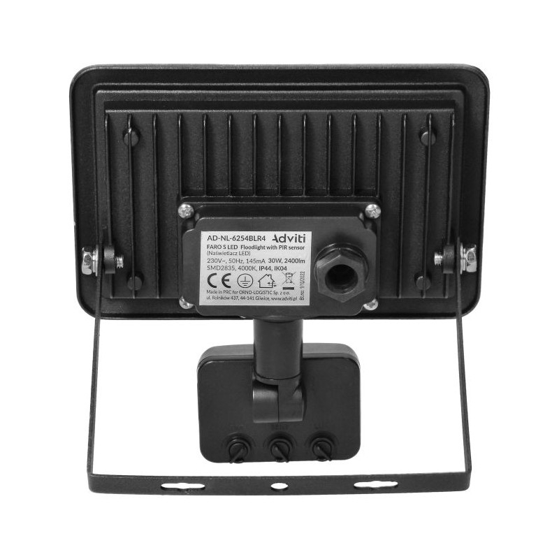 A reflektor beépített PIR érzékelővel rendelkezik, amely automatikusan bekapcsolja a világítást mozgás érzékelésekor. Az érzékelő maximális hatótávolsága 8 méter, így ideális választás nagyobb területek megvilágítására is. A világítási időt az igényeinek megfelelően állíthatja be, 10+/-3 másodperctől egészen 10+/-3 percig. Ez a funkció nemcsak kényelmes, hanem energiatakarékos is, hiszen a reflektor csak akkor működik, amikor szükség van rá.