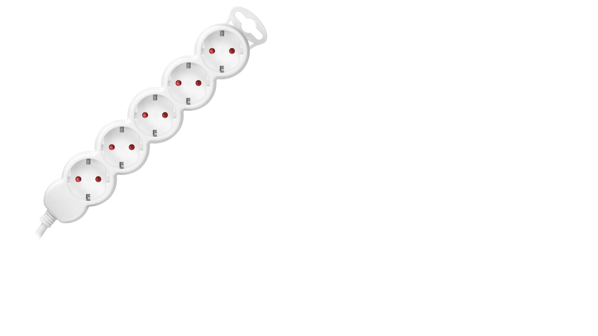 - 5 db Schuko (2P+F) aljzat, 45°-ban elforgatott középrésszel