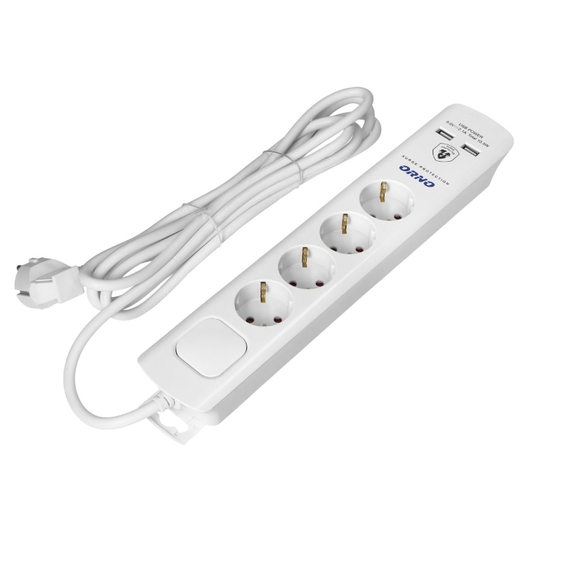 ORNO ORAE13243(GS)/W/3M túlfeszültség-védett elosztó, 4 aljzattal, 3 m kábellel, USB töltővel